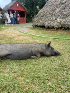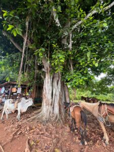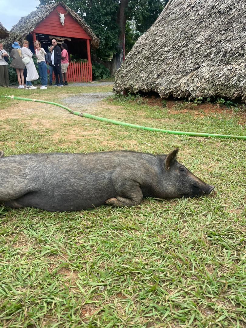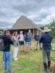 Breve parada en el ranchón de Las Barrigonas, rodeado por típicas casas campesinas y plantaciones de tabaco.