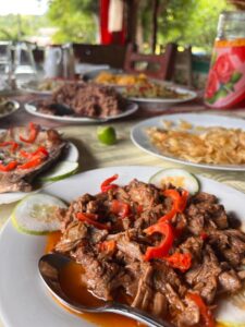 Almuerzo criollo en un restaurante de zona, con música campesina.